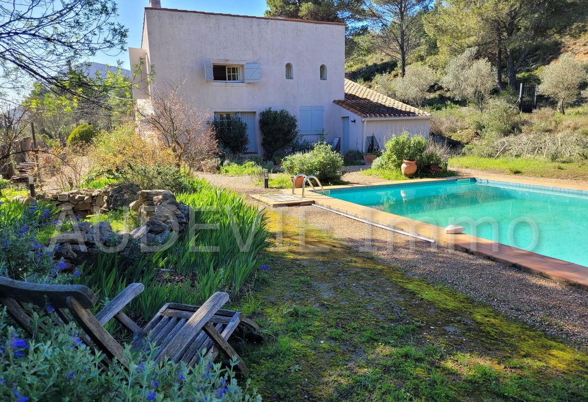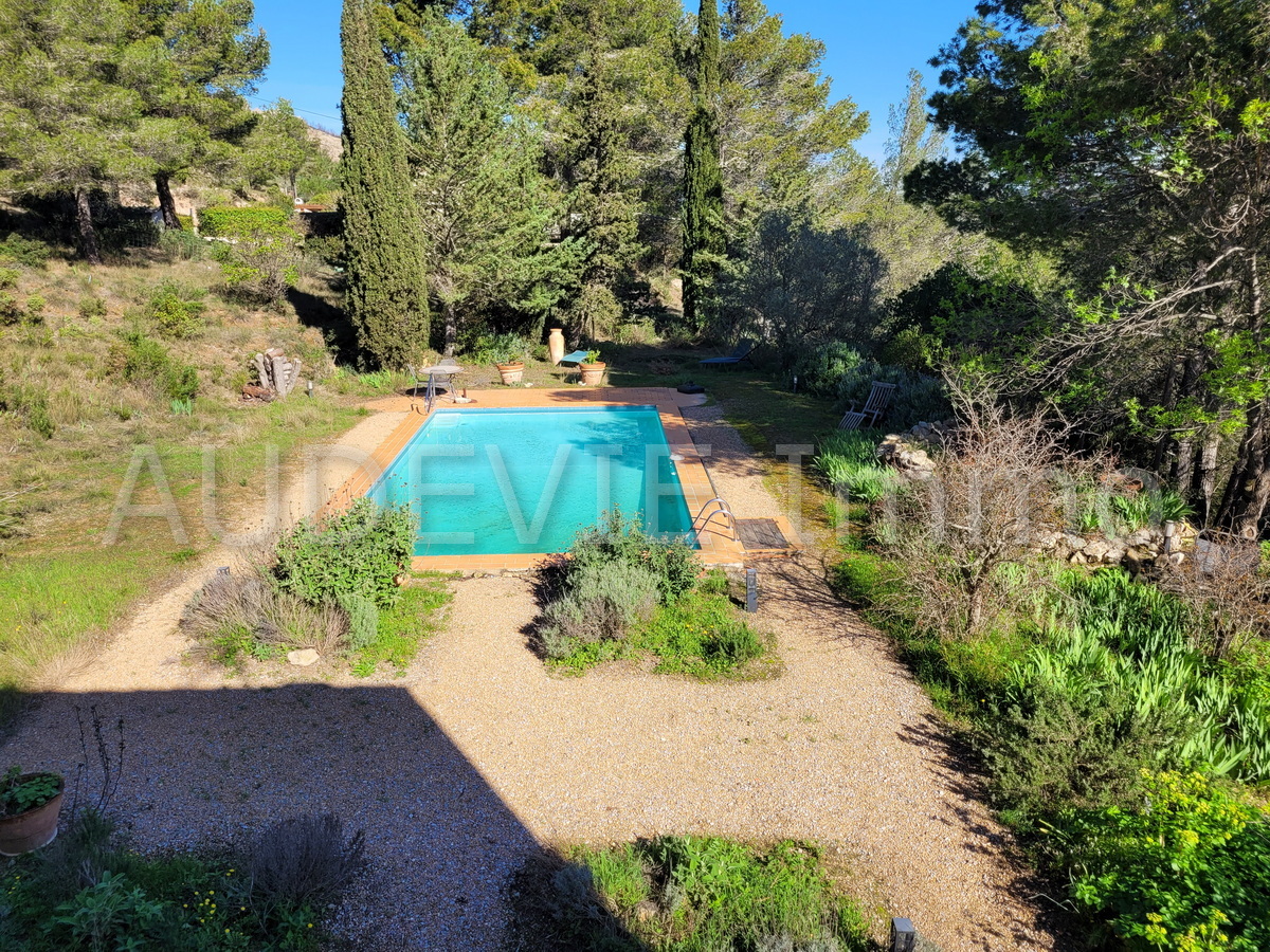 Dit aangenaam landhuis uit de jaren 70 biedt ca. 140 m² woonoppervlak op een 3.400 m² perceel met zwembad en vrij uitzicht op de Corbières en wijngaarden.