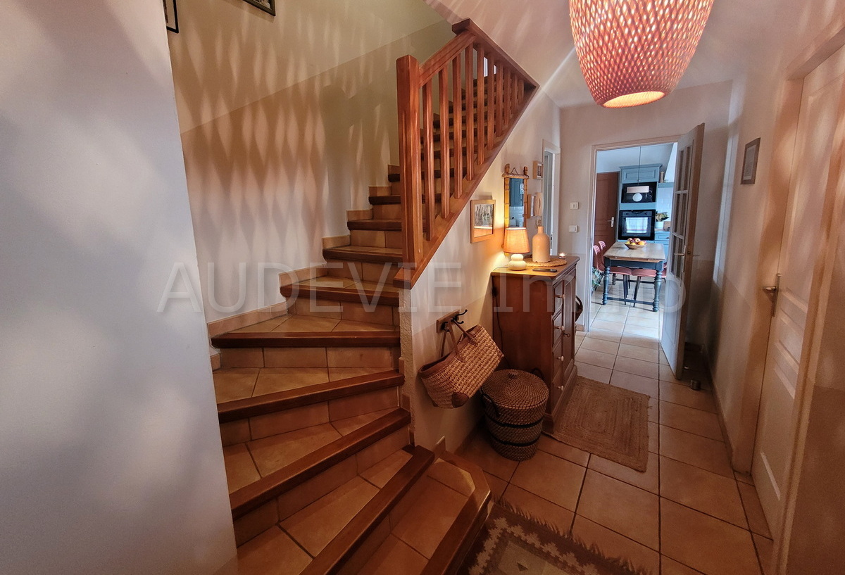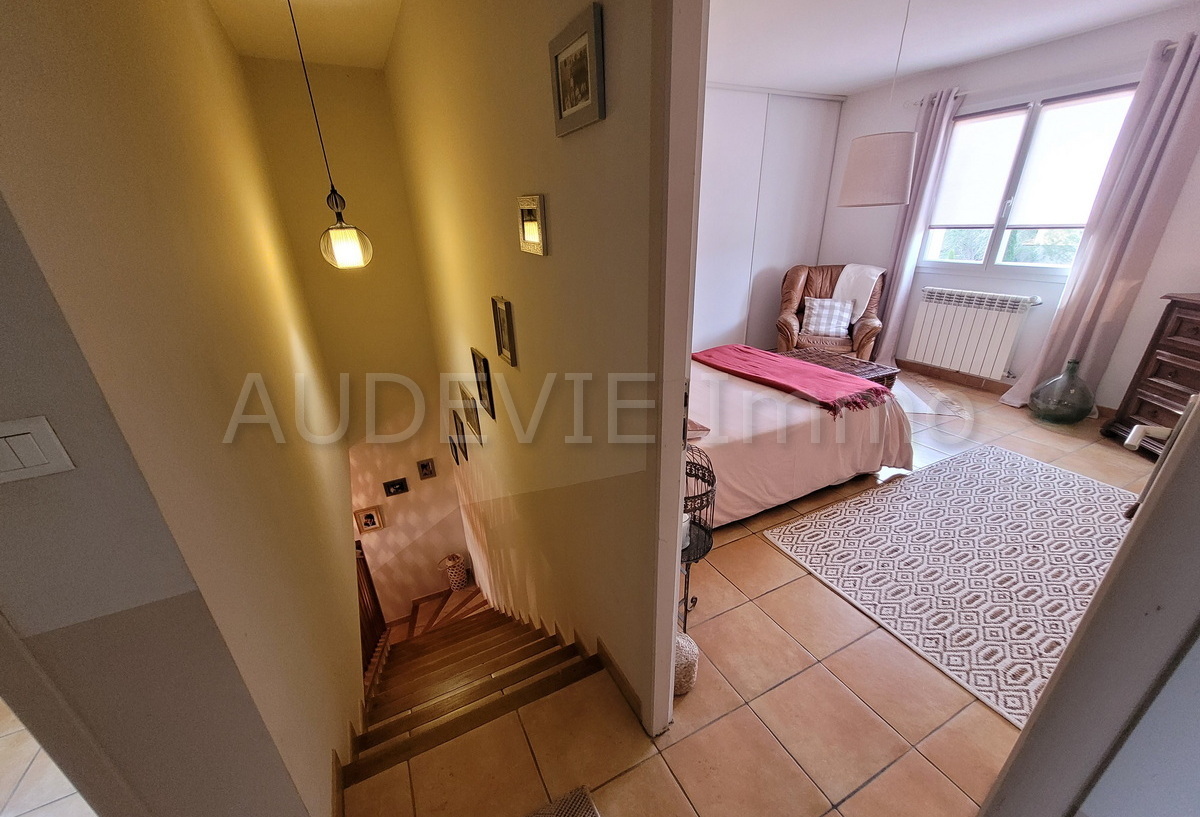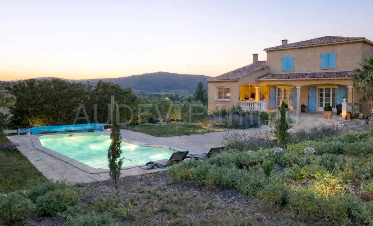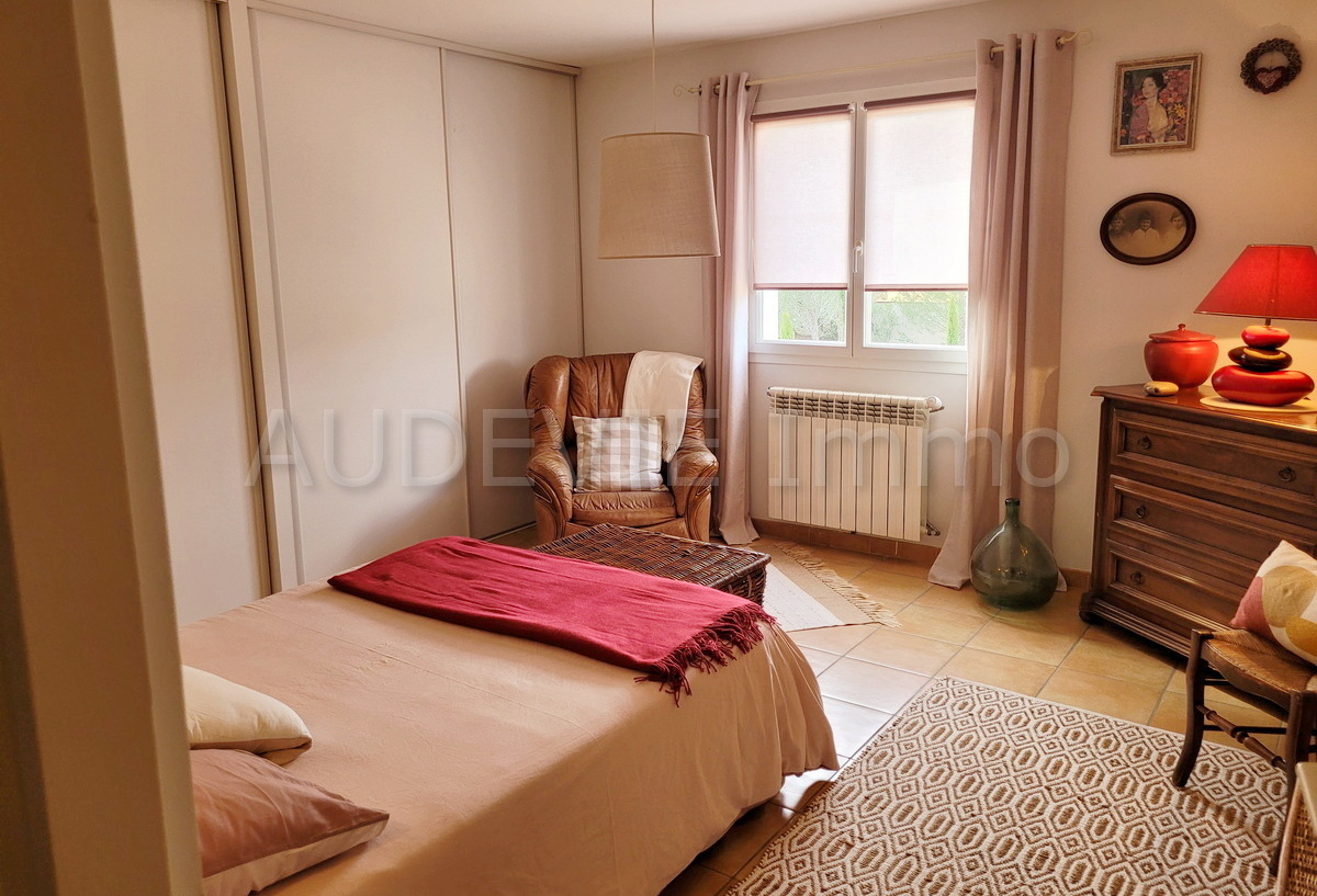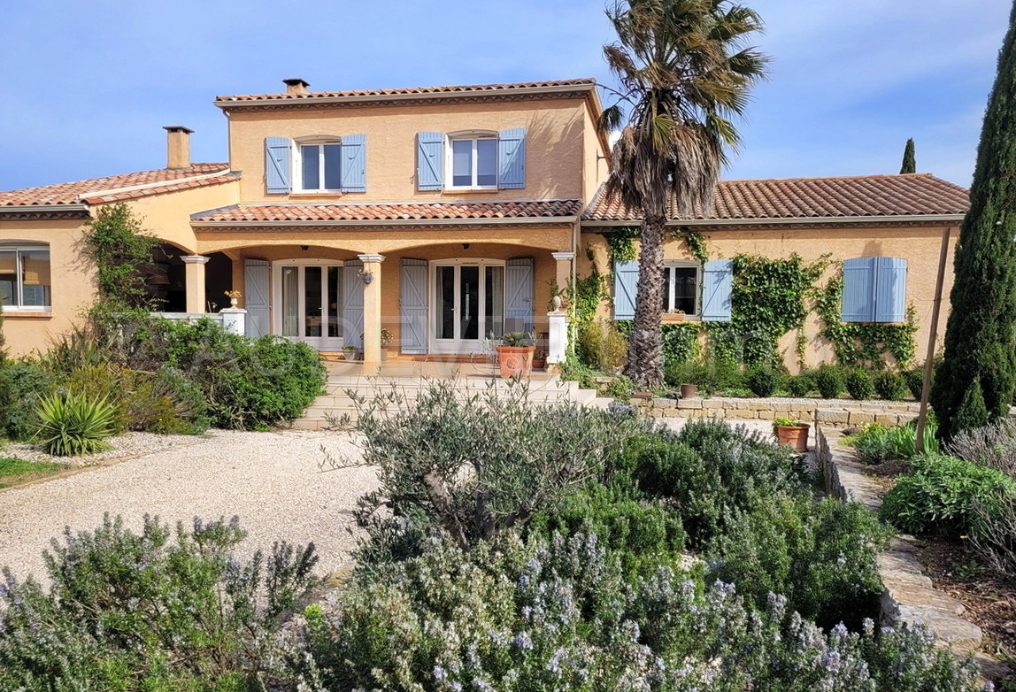 Située en bordure d’un charmant village vigneron des Corbières, à proximité de Narbonne et à seulement 35 minutes de la Méditerranée, cette élégante villa construite en 2003 offre un cadre de vie privilégié, alliant confort, volumes et environnement naturel.